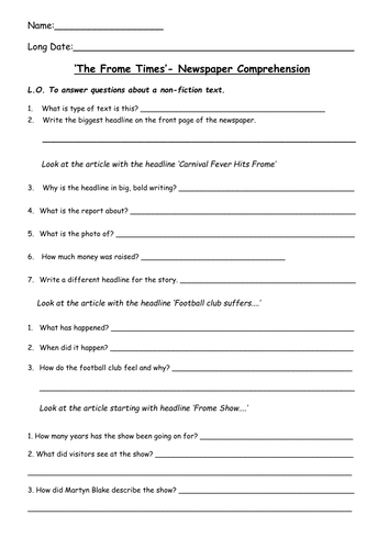One of the outstanding ways to find free and high-quality newspaper reading comprehension worksheets pdf downloads is to beginning by searching online. The internet is home to a broad variety of websites that offer free newspaper reading comprehension worksheets pdf downloads, among other things templates, coloring pages, and more.